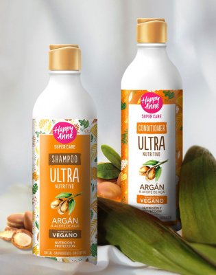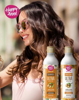 Насыщенный миксом 4 масел арганы, макадамии, асаи и подсолнечника кондиционер «Ультра питание» Happy Anne вместе с одноименным шампунем обеспечивает надлежащий уход и защиту тусклым волосам, лишенным жизненной силы.