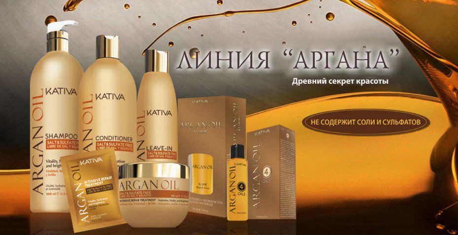 Драгоценное аргановое масло является магическим эликсиром красоты, сохраняющим молодость кожи, стимулирующим регенерацию, и надежным щитом, который защищает волосы, ногти от негативных воздействий солнца и ветра. Серия «Аргана» от  косметической марки  KATIVA содержит в составе продуктов чистейшее, сертифицированное  аргановое масло высочайшего качества.