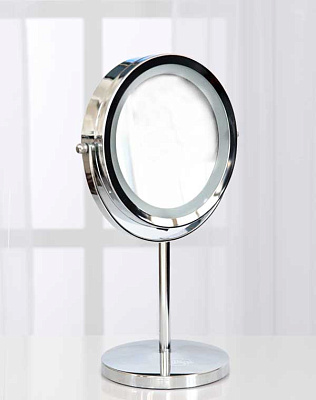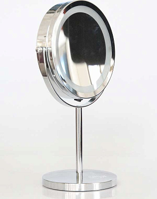 Профессиональное косметическое зеркало для проведения процедур ухода и очищения кожи, коррекции формы бровей и нанесения макияжа. Настольное зеркало с долговечным хромированным покрытием достойно дополнит интерьер любого салона красоты и подойдет для домашнего ухода.