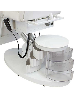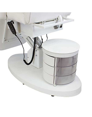 Комплектация: электрический привод (3 мотора), кресло, тумбочка с шестью ящичками, основание.