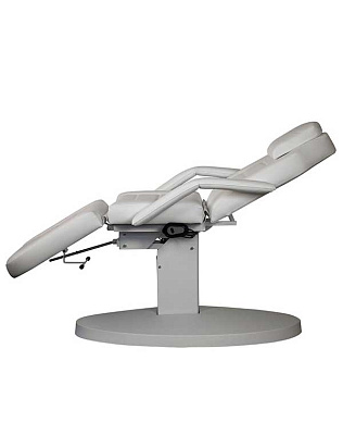 Высота меняется с помощью электропривода. Управление осуществляется с удобного пульта. Педикюрное оборудование можно трансформировать в кушетку, разложив до горизонтального положения. Подголовник и подлокотники можно снять при необходимости. В сидении есть специальное отверстие для лица. Благодаря этому кресло можно использовать в массажном кабинете.