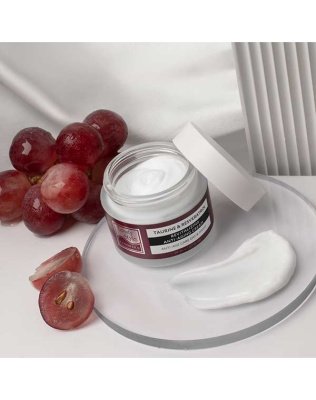 Экстракты косточек, листьев и кожицы винограда укрепляет капилляры и нормализует микроциркуляцию, предупреждает купероз. Снижает оксидативный стресс, усиливает механизмы собственной защиты и снижает повреждающее действие солнечных лучей.