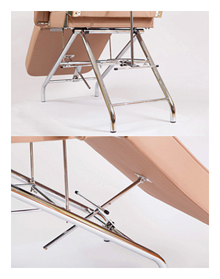 Угол наклона ножной части регулируется механически. Регулировка угла наклона спинки осуществляется при помощи специального рычага.