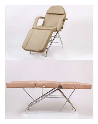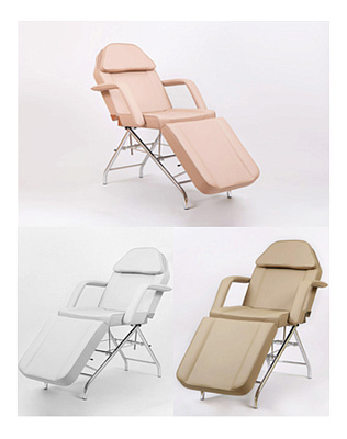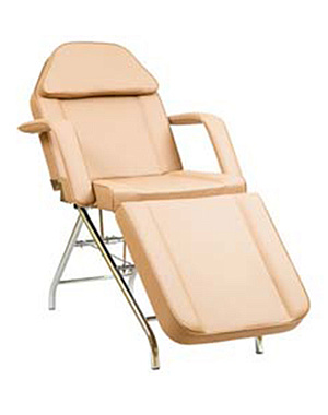 Удобное косметологическое кресло с механическими регулировками. Прочный хромированный каркас с широким сиденьем и спинкой.