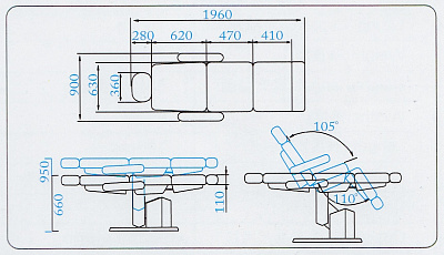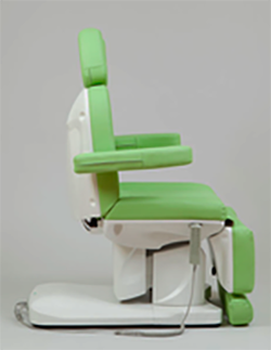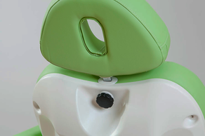 Подголовник имеет отверстие для лица, которое закрывается специальной подушкой. Подлокотники кресла поднимаются при необходимости и принимают горизонтальное положение одновременно со спинкой.