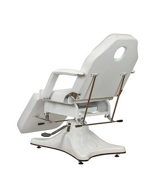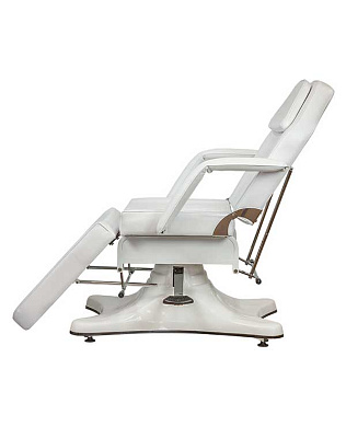 Стационарная косметологическая кушетка МД-823 на гидравлике с эргономичным сиденьем и мягкими съемными подлокотниками. Модель является трех секционной, с регулируемой спинкой и ножной частью. При помощи удобного механического управления специалист может быстро и без усилий подобрать оптимальное положение спинки, в зависимости от процедуры. Регулируемая ножная часть позволяет опустить или поднять ноги клиента. Обивка кресла-кушетки выполнена из мягкой матовой экокожи и плотного поролона оптимальной толщины, чтобы клиент с любой массой тела смог удобно расположиться и расслабиться, получая удовольствие от процедур.