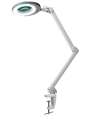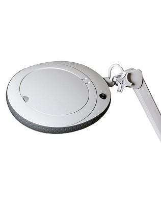 Бестеневая лампа со встроенной лупой является незаменимым инструментом для выполнения работ, требующих повышенной точности исполнения. Данная лампа может быть использована как в домашних условиях, так и в офисах, в лабораториях, в мастерских, в кабинетах маникюра и педикюра, и во многих других сферах человеческой деятельности, требующих повышенной точности при выполнении каких-либо операций. Данная модель оснащена кронштейном, позволяющим настроить высоту и угол наклона, струбциной для крепления к краю стола и люминесцентной лампой, состоящим из 60-ти светодиодов, общей мощностью 8 Вт. Мощность линзы - 8 диоптрий.