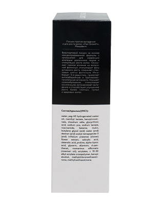 Комплексное действие ингредиентов лосьона увеличивает количество волос в фазе анагена, снижает выработку DHT за счет подавления 5- альфаредуктазы, снижает синтез медиаторов воспаления, стимулирует синтез белков якорной системы поддержки волоса, сохраняет активность стволовых клеток волосяного фолликула (HFSC).