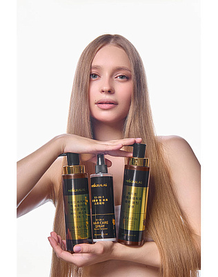 Масло арганы обладает гидратирующим, регенерирующим действием, укрепляет кутикулу по всей длине, уменьшая повреждения, придает волосам натуральный блеск.