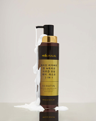 Маска-бальзам 2-в-1 восстановление и питание с кератином и маслом арганы 400мл MEOLI