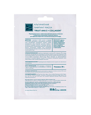 Альгинатная лифтинг-маска "Fruit AHA 5 + Collagen" 30 гр*10 шт Beauty Stylе (обновление, сужение пор, жирная)