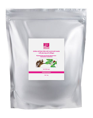 Маска на основе альгинатов, гидролизата коллагена и экстракта женьшеня для всех типов кожи, особенно для кожи с признаками увядания, со сниженным тонусом, морщинами, для «уставшей» кожи, для кожи в стрессе, а так же для профилактики возрастных изменений.