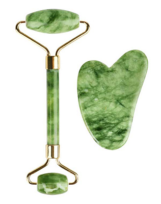 Набор бьюти-гаджетов для массажа лица. Массажер в форме роллера и кристалл гуаша из природного нефрита помогут поддержать молодость кожи, улучшить микроциркуляцию, ускорить лимфодренаж и детоксикацию тканей. А также расслабить спазмированные мышцы лица, тонизировать ослабленные. При регулярном использовании заметно улучшится тон кожи, повысится ее упругость, разгладятся мелкие морщинки, контуры лица станут более четкими.