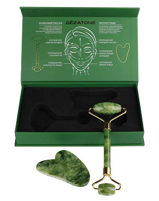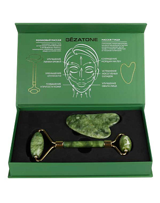 Gezatone Набор нефритовый массажер-роллер для лица и кристалл для массажа Гуаша AMG331 Gezatone* 1301276