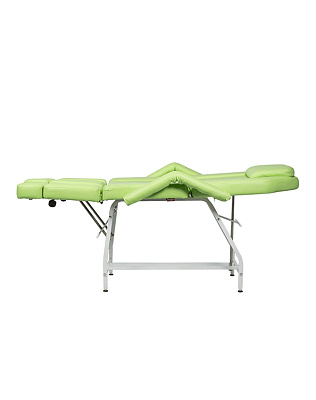 Устойчивое педикюрное кресло, раскладывающееся до горизонтального положения. Отверстие для лица в спинке закрывается подголовником и не мешает клиенту в положении сидя. Кресло имеет съемные подлокотники и две выдвижные подставки для ног с упорами. Габаритные размеры помогают вписать его в интерьер любого кабинета, а серебристый цвет и хромированная опора – создать необычный дизайн.