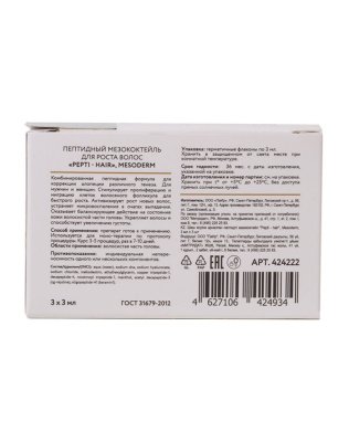 Мария, добрый день. Пептидный мезококтейль для роста волос "Pepti - HAIR" 3мл*3 шт., MESODERM для мезотерапии, инъекционных методик. Есть в наличии в г. Пермь 7(342)2357845.