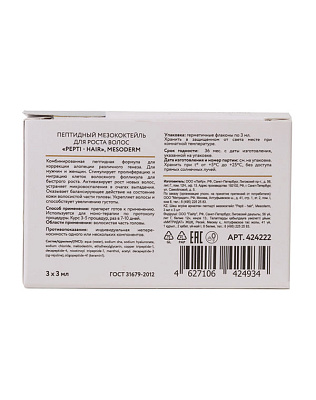Татьяна, здравствуйте. Пептидный мезококтейль для роста волос "Pepti - HAIR" 3мл*3 шт., MESODERM производитель СПб.