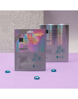 Антивозрастная маска на шелковой основе в активном растворе с коллагеном, пептидом карнозином и гидролатом нимфеи. Обладает выраженным омолаживающим, антиокисдантным действием, эффективна в отношении морщин любой этиологии.