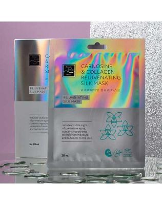 Шелковая омолаживающая маска для лица с коллагеном и карнозином, 5 шт х 28 мл «Beauty Style»