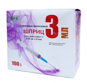 Шприц 3 мл. (3-х комп.) SFM одноразовый стерильный с иглой 0,63*32 - 23G
