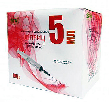 Шприц 5 мл. (3-х комп.) SFM одноразовый стерильный с иглой 0,7*40 - 23G