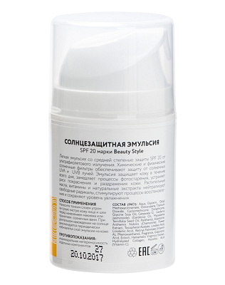 Солнцезащитная эмульсия SPF 20 Beauty Style, 50 мл