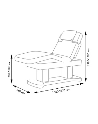 Каркас кушетки оснащен двумя колоннами, это обеспечивает равномерное распределение нагрузки и устойчивость кушетки. Высота регулируется с помощью двух синхронизированных электромоторов, что добавляет надёжности и увеличивает срок службы.