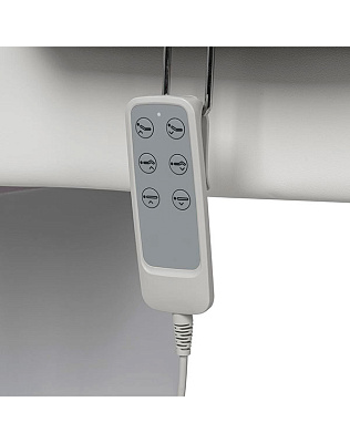 Комплектация: кушетка, подлокотники, съемная подушка, элементы каркаса и основания, электропривод с четырьмя электромоторами и дистанционным пультом управления.