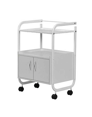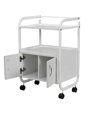 Купить косметологическую тележку МД-104 можно для установки в кабинете любой площади, так как она имеет компактные размеры и продуманную конструкцию, без лишних элементов и острых углов. Модель достаточно вместительна: хранить инструменты и прочие принадлежности можно на полочке, внутри тумбы, а также на тумбе. Пространства между тумбой и полочкой вполне достаточно для размещения высоких бутылок и баночек с косметикой, расходными средствами, а также для компактных косметологических аппаратов.