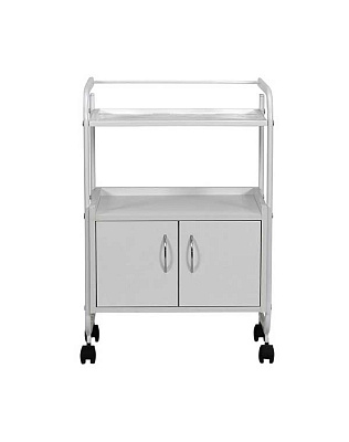 Комплектация: каркас, верхняя полочка, тумба, закрывающаяся дверками, вращающиеся колеса.
