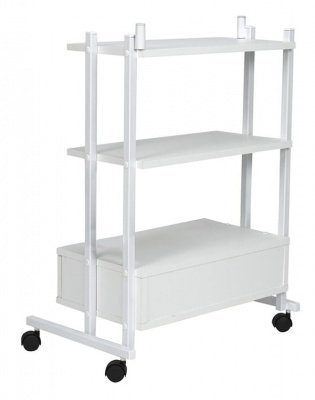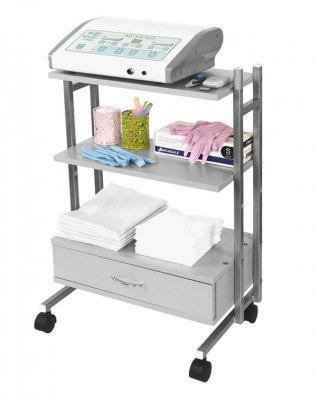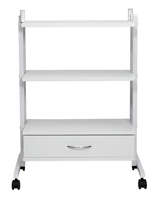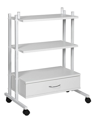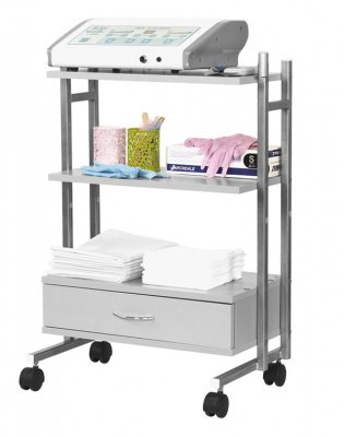 Функциональная и практичная тележка на вращающихся колесиках для оснащения различных зон салона красоты. Тележка универсальна и подойдет для оборудования зоны парикмахера, педикюрного мастера или массажиста. Разработана так, чтобы мастер мог получить оперативный доступ к расходным материалам и инструментам, расположив их на открытых полках. Нечасто используемые предметы удобно хранить в выдвижном ящике. Косметологический столик трио мобилен и легко перемещается в рабочем пространстве за счет вращающихся вокруг своей оси колесиков. В верхней части столика расположен держатель для лампы-лупы.