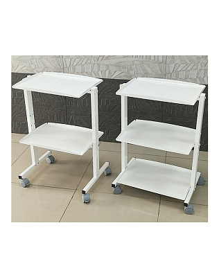 Легкий стильный стол-тележка для косметолога лаконичного белого цвета, который гармонирует с любым помещением. Небольшие бортики на каждой полке предохраняют от падения дорогостоящее оборудование и мелкие аксессуары, необходимые специалисту для работы с клиентом.