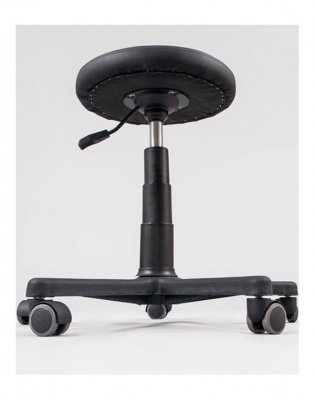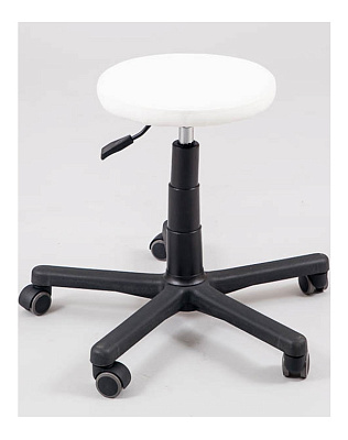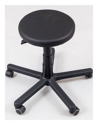 Удобный стул мастера круглой формы без спинки. Увеличенное пластиковое основание и прочные колеса делают эту модель особенно устойчивой. Стул имеет пневматическую регулировку высоты при помощи специального рычага, который располагается под сиденьем. Сиденье стула изготовлено из искусственной кожи высшей категории.
