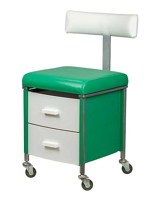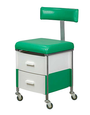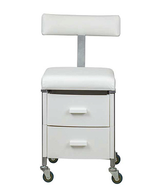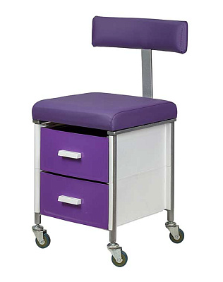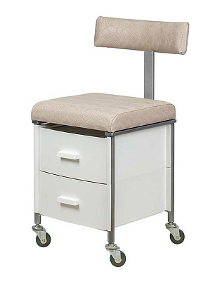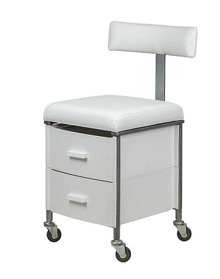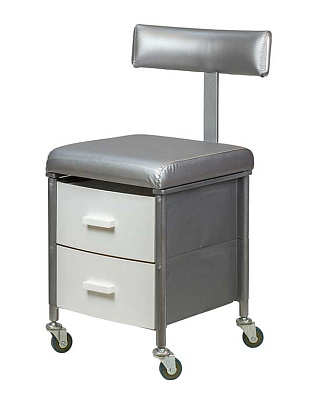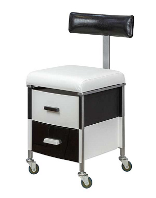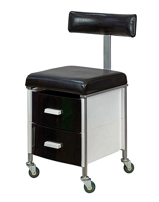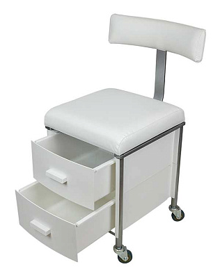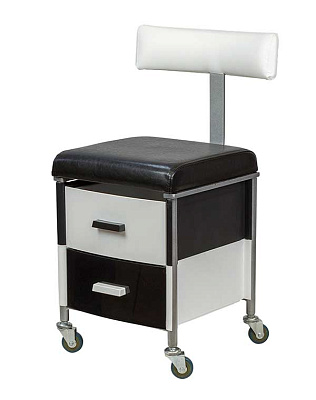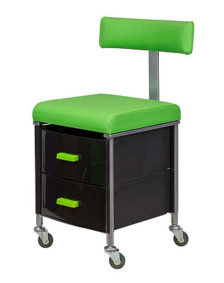 Стул укомплектован двумя выдвижными ящиками, где мастер может держать необходимые для работы инструменты и расходные материалы. Наличие мобильных колес позволит беспрепятственно перемещаться по рабочей зоне. При необходимости колеса можно зафиксировать специальными тормозами на каждом колесе.