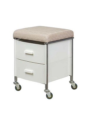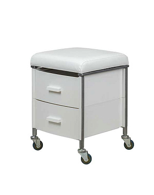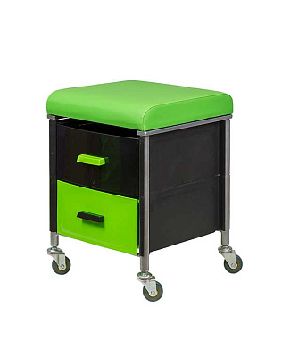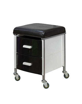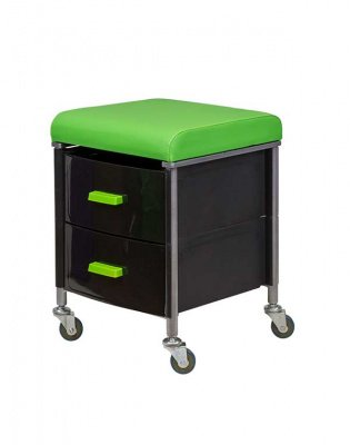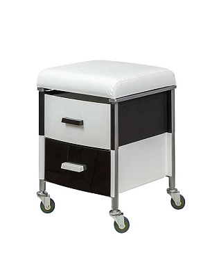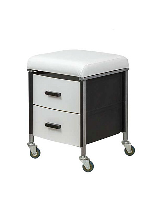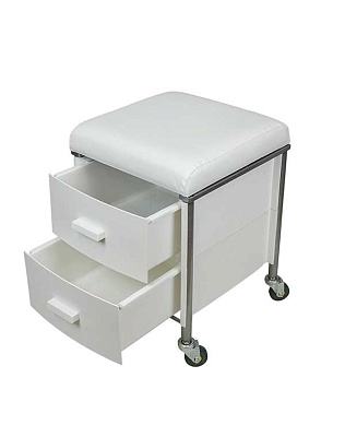 Компактный стул мастера имеет удобное мягкое сиденье, на котором специалист может провести продолжительное время и не чувствовать усталость. Несомненным плюсом педикюрного оборудования является наличие двух глубоких ящиков. Мастер может разложить инструменты и расходные материалы, чтобы необходимые приспособления находились всегда под рукой. Комплектация маневренными колесами делает стул мастера мобильным, что позволит с легкостью перемещаться по рабочей зоне. На каждом колесе предусмотрен тормоз, чтобы при необходимости зафиксировать стул.