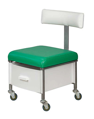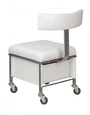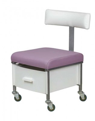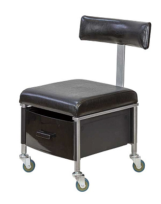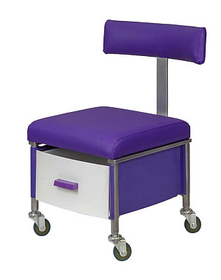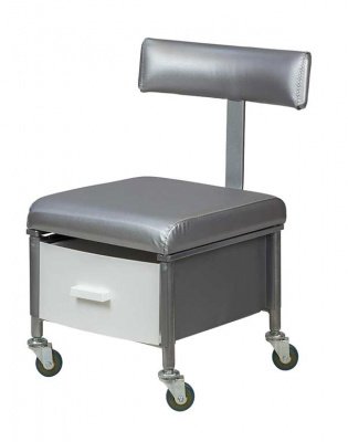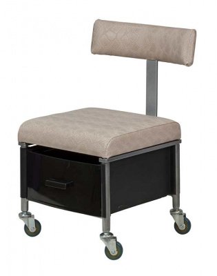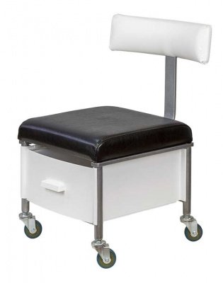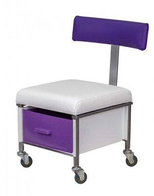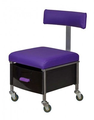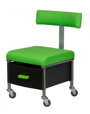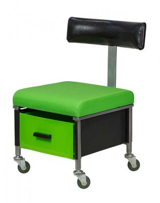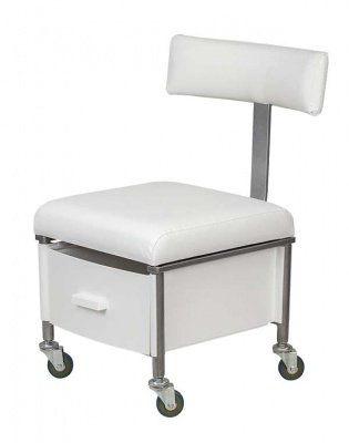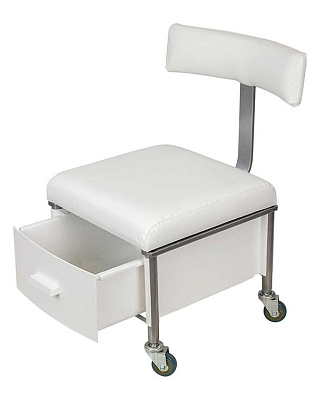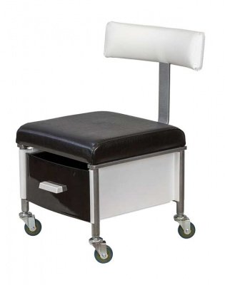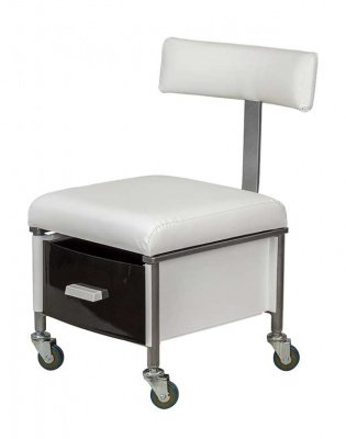 Сиденье со спинкой обеспечит мастеру удобства, необходимые для комфортной работы. Под сиденьем есть практичный ящик, в котором можно держать инструменты первой необходимости. Чтобы сэкономить время специалистов, стул для мастера педикюра оснащен поворотными колесами, которые позволят легко перемещаться, не вставая с места.