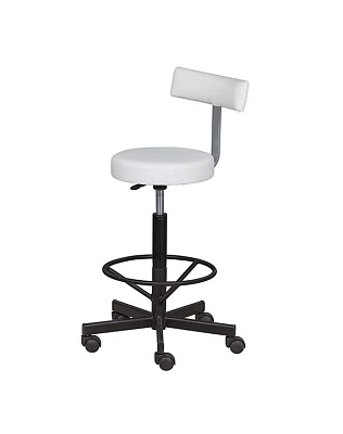Стул с мягким сиденьем в виде таблетки позволит мастеру занять удобную позу во время проведения процедур. Спинка изогнутой формы отвечает за поддержку правильной осанки.