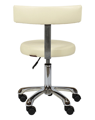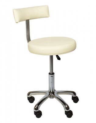 Стул с высокой посадкой и анатомической спинкой для работы парикмахеров, визажистов, мастеров маникюра и педикюра, администраторов. Универсальное оборудование обеспечивает абсолютный комфорт и мобильность в процессе работы. Высота стула регулируется рычагом, который находится под сиденьем. Система регулировки – пневматика. Кресло легко перемещается в пространстве за счет вращающихся вокруг своей оси колесиков в основании.