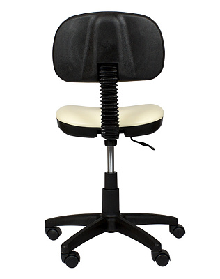 Стул мастера разработан с учетом особенностей работы салонных мастеров. Обеспечивает комфорт мастеру во время проведения процедуры: мягкая спинка позволяет расслабить спину, а удобное анатомическое сиденье обеспечивает правильную посадку на протяжении всей работы. Функциональность креслу придает подъемный механизм типа газ-лифт, управлением которым расположено под сиденьем. Управление пневматическим подъемником осуществляется нажатием на педаль.