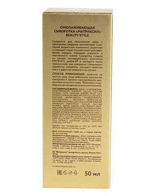 Насыщенная сыворотка серии «Матриксил» Бьюти Стайл, предназначена для коррекции признаков инволюционных изменений.  Повышенная концентрация стимулирующего пептида Matrixyl synthe’6 способствует активации синтетической функции фибробластных клеток, восстановлению дермального матрикса с последующим восстановлением гидробаланса, улучшением тонуса и биомеханики кожных покровов.