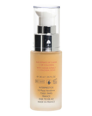 Сыворотка «Золотая роскошь» содержит золото 24 К и действует мгновенно, возвращая коже сияние, одновременно предотвращая образование пигментных пятен, устраняет тусклый цвет лица.