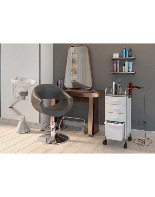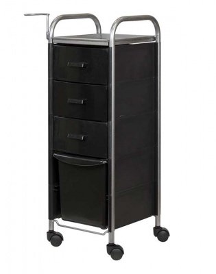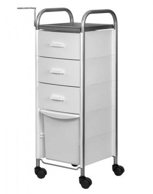 В компактной парикмахерской тележке достаточно места для приспособлений и косметики парикмахера. Верхняя полка предназначена для инструментов первой необходимости.