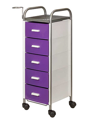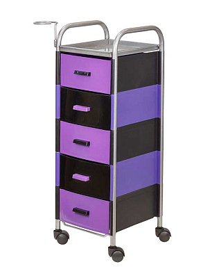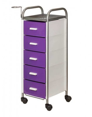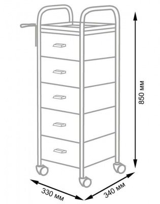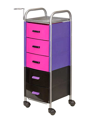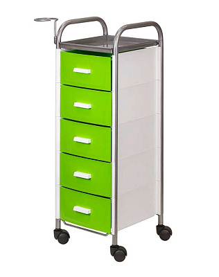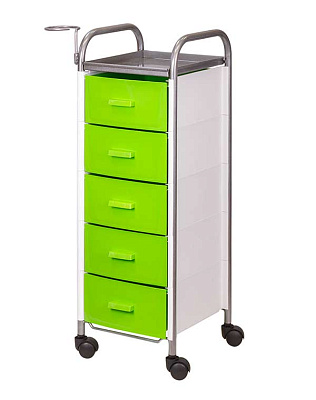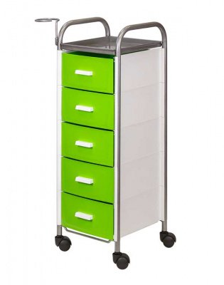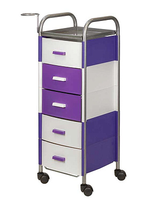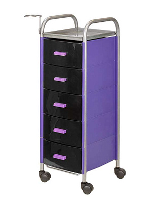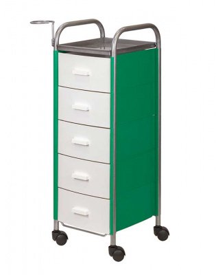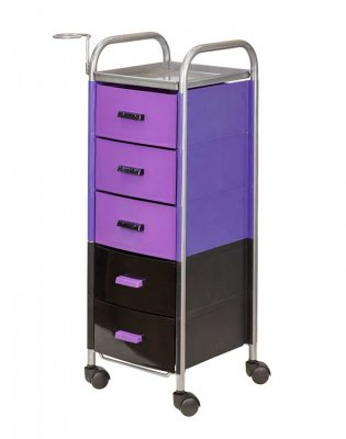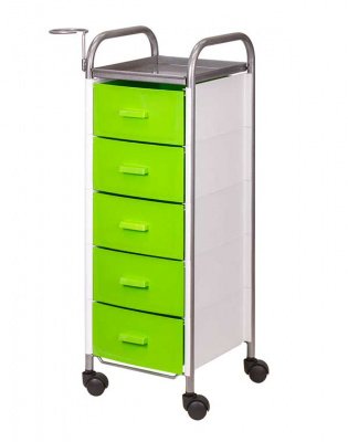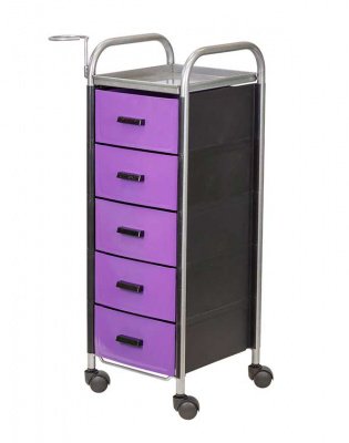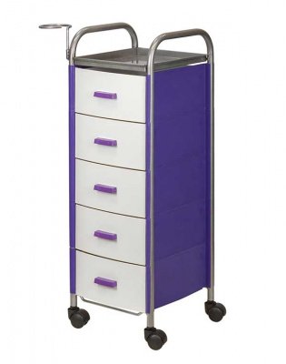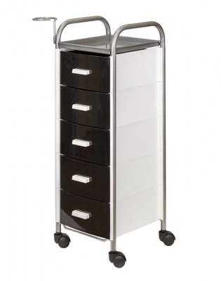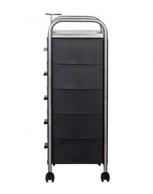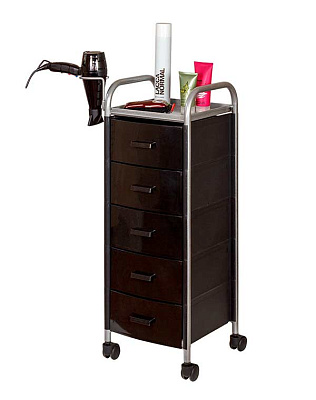 Для принадлежностей в парикмахерской тележке есть пять выдвижных ящиков. Верхняя полка позволит мастеру держать под рукой инструменты, необходимые во время работы с клиентом. На боковине установлен практичный фенодержатель. Вращающиеся колесики обеспечивают плавное и практически бесшумное перемещение оборудования в пределах рабочей зоны.