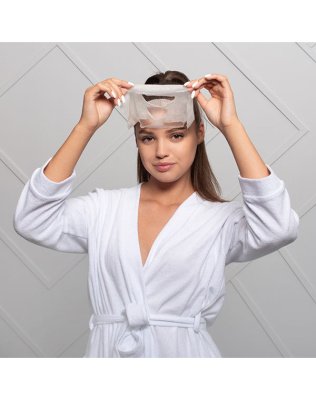 Очистить кожу от макияжа и загрязнений, промокнуть насухо бумажной салфеткой. Извлечь маску из упаковки, аккуратно развернуть. Поместить маску на лицо, начиная со лба, аккуратно расправить маску, удаляя воздушные пузырьки и разглаживая складки. Время экспозиции: 20 - 25 минут. По истечении положенного времени, снять маску, легко помассировать до полного впитывания остатков раствора. При желании, можно смыть остатки раствора. Нанести крем по типу кожи.