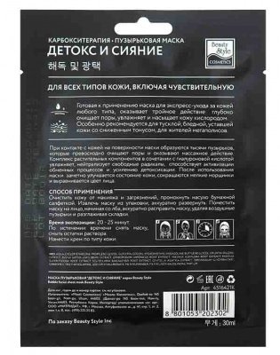 Очищающая «пузырьковая» маска для лица Beauty Style (США-Корея) с эффектом карбокситерапии. Подходит любому типу кожи, включая чувствительную.