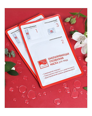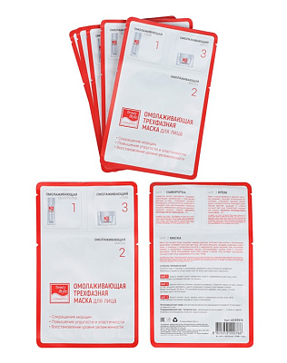 Саше, разделенное на 3 сегмента: в которых находятся компоненты комплекса: 1. сыворотка, 2. готовая к использованию маска на нетканой основе в растворе активных компонентов, 3. крем. Индивидуальная упаковка, рассчитанная на однократное применение.