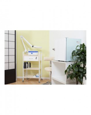 Малая тумба косметолога ТК-1 разработана российским производителем по типу удобной передвижной тележки. Эргономичный дизайн и высокая функциональность тумбы позволяют специалисту иметь под рукой все необходимые приборы, инструменты и препараты, не отрываясь от работы во время процедуры.