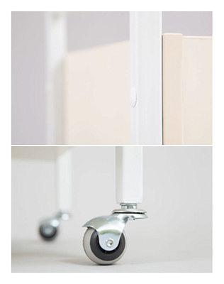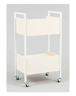 Полки имеют небольшие бортики, которые предотвращают падение предметов. Тележка оснащена круглыми прорезиненными колесиками, которые позволяют тележке легко и бесшумно перемещаться.