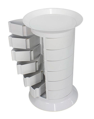 Тумба универсальная GiroCo Catalina white – стильное оборудование для современного салона красоты. Оборудование очень вместительно за счет множества выдвижных ящичков. Для перемещения тумбы в конструкции предусмотрены маневренные колеса. Белый цвет мебели для холла подойдет для любого интерьера.