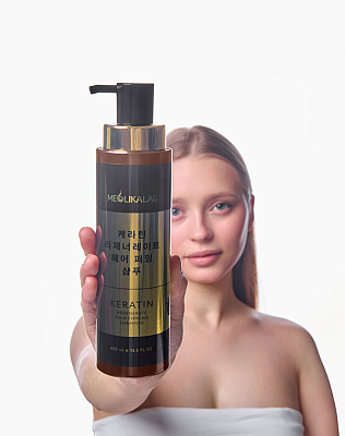 Укрепляющий восстанавливающий шампунь с кератином 400мл MEOLI